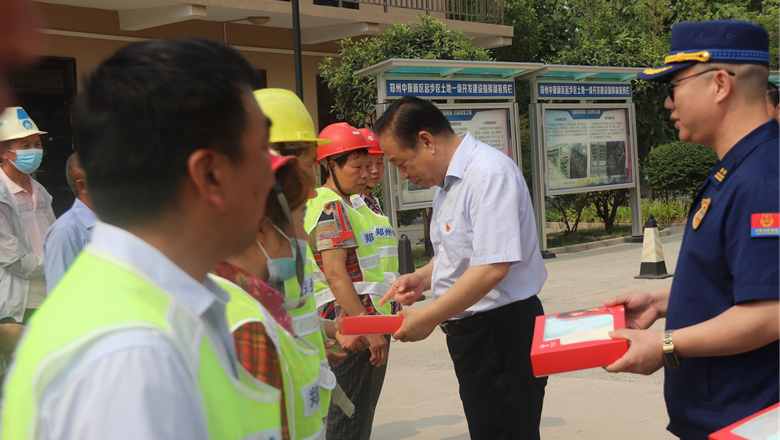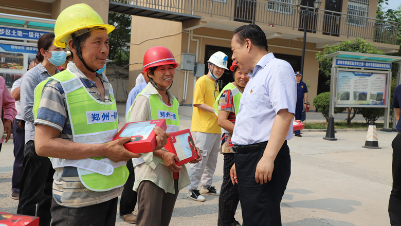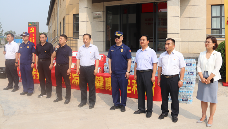 進入夏季以來,持續(xù)出現(xiàn)的高溫天氣,給奮戰(zhàn)在建設(shè)一線的施工人員帶來嚴峻考驗,廣大職工不畏酷暑,堅守崗位,辛勤付出。為做好廣大職工的防暑降溫工作,切實保護職工身體健康,6月11日,鄭州市總工會、鄭州市消防救援支隊到鄭州地產(chǎn)集團西流湖公司中原新區(qū)土地一級開發(fā)項目指揮部開展主題為“送清涼、送安全、送健康、促和諧”的夏季送清涼活動。鄭州市一級巡視員、市總工會黨組書記、主席趙新中,市消防救援支隊副支隊長、滅火救援指揮部部長李隆,市總工會副主席宋少丹,鄭州地產(chǎn)集團有限公司監(jiān)事會主席、工會主席李靜波及西流湖公司黨支部書記、董事長、總經(jīng)理吉獻亮等領(lǐng)導(dǎo)出席活動。活動由西流湖公司副總經(jīng)理昌磊主持。