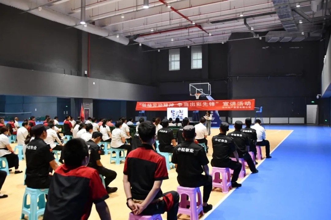 宣講團(tuán)第一組赴鄭地奧體公司在奧體中心綜合訓(xùn)練館展開(kāi)宣講,鄭地奧體、中航物業(yè)保潔及安保等一線(xiàn)員工共100余人參加了此次宣講活動(dòng)。來(lái)自黨群黨支部王曉婕、人力資源黨支部馬遠(yuǎn)俊、黃河兩岸公司黨支部吳林熹、都市開(kāi)發(fā)公司黨支部馮靜、投資管理公司黨支部范瑩,從學(xué)習(xí)貫徹習(xí)近平總書(shū)記重要回信精神、“講好黃河故事”、“ 絲路精神”和共筑中國(guó)夢(mèng)等方面,通過(guò)身邊人身邊事,以小見(jiàn)大,講述了一個(gè)個(gè)平凡而偉大的勞動(dòng)者的故事,號(hào)召全體黨員同志進(jìn)一步樹(shù)立勞動(dòng)觀(guān)念、弘揚(yáng)勞動(dòng)精神,爭(zhēng)做出彩鄭地人,以一流的業(yè)績(jī)和實(shí)際行動(dòng)擔(dān)當(dāng)重任,為集團(tuán)高質(zhì)量發(fā)展貢獻(xiàn)力量。