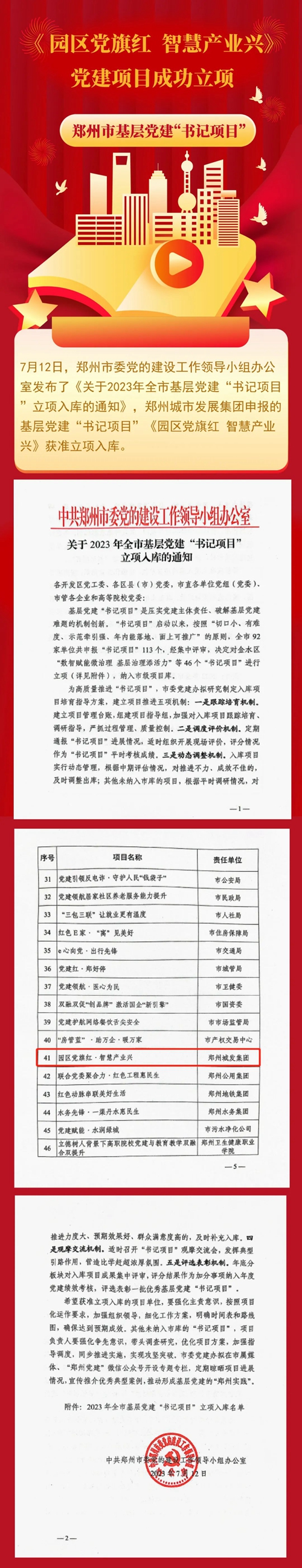 該項“書記項目”主要致力于推動黨建與產(chǎn)業(yè)園建設、招商和運營的深度融合,充分發(fā)揮黨建引領作用,切實為園區(qū)企業(yè)提供“一站式”的黨建服務、政務服務、創(chuàng)新創(chuàng)業(yè)服務、社會生活服務等,為企業(yè)發(fā)展增效賦能,推動產(chǎn)業(yè)園黨組織和黨的工作覆蓋更加有效、體制機制更加科學、黨組織建設更加規(guī)范、黨員教育管理更加精準、基層黨組織保障更加有力,園區(qū)黨建品牌更加響亮,示范作用更加凸顯,形成具有國企特色、符合鄭州實際的產(chǎn)業(yè)園黨建工作舉措,以高質(zhì)量黨建引領和賦能園區(qū)高質(zhì)量發(fā)展,致力打造在全省、全市具有標桿作用和示范效應的“黨建+產(chǎn)業(yè)園”新名片。