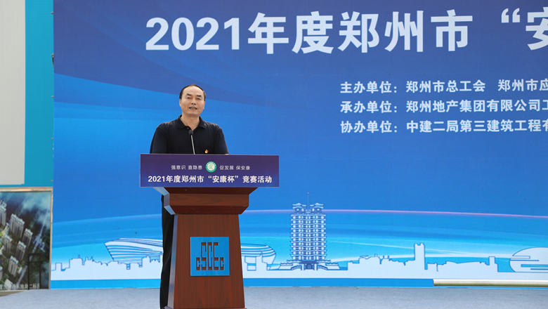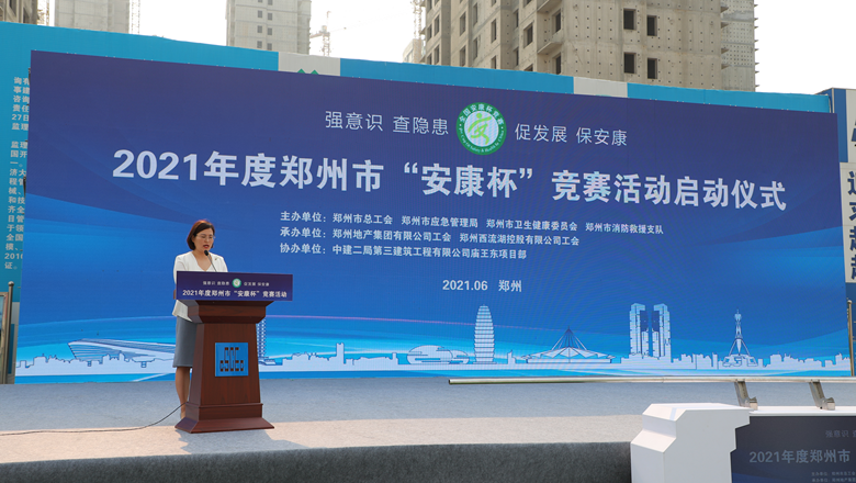 為深入貫徹落實(shí)習(xí)近平總書記有關(guān)加強(qiáng)安全生產(chǎn)工作的部署和要求,進(jìn)一步強(qiáng)化各級各部門、各企業(yè)主體的安全責(zé)任意識,確保我市安全生產(chǎn)形勢持續(xù)好轉(zhuǎn),職工安全健康不斷鞏固。6月11日上午,由鄭州市總工會、鄭州市應(yīng)急管理局、鄭州市衛(wèi)生健康委員會及鄭州市消防救援支隊(duì)主辦,鄭州地產(chǎn)集團(tuán)工會、鄭州西流湖控股有限公司工會承辦的鄭州市2021年“安康杯”競賽啟動(dòng)儀式在中原新區(qū)廟王東安置區(qū)項(xiàng)目成功舉行。鄭州市相關(guān)組織部門、市總工會成員單位、地產(chǎn)集團(tuán)、西流湖公司、各參建單位共200余人參加啟動(dòng)儀式。鄭州市一級巡視員,市總工會黨組書記、主席趙新中、鄭州市衛(wèi)生健康委員會黨組成員、二級調(diào)研員楊德林、鄭州市應(yīng)急管理局三級調(diào)研員安春茂、鄭州市消防救援支隊(duì)副支隊(duì)長、滅火救援指揮部部長李隆、鄭州市總工會副主席宋少丹、鄭州地產(chǎn)集團(tuán)有限公司監(jiān)事會主席、工會主席李靜波、鄭州地產(chǎn)集團(tuán)西流湖公司黨支部書記、董事長、總經(jīng)理 吉獻(xiàn)亮,中建二局第三建筑工程有限公司西北分公司黨委副書記、執(zhí)行總經(jīng)理趙海軍出席儀式。啟動(dòng)儀式由市總工會勞動(dòng)和經(jīng)濟(jì)部部長宋慧主持。
