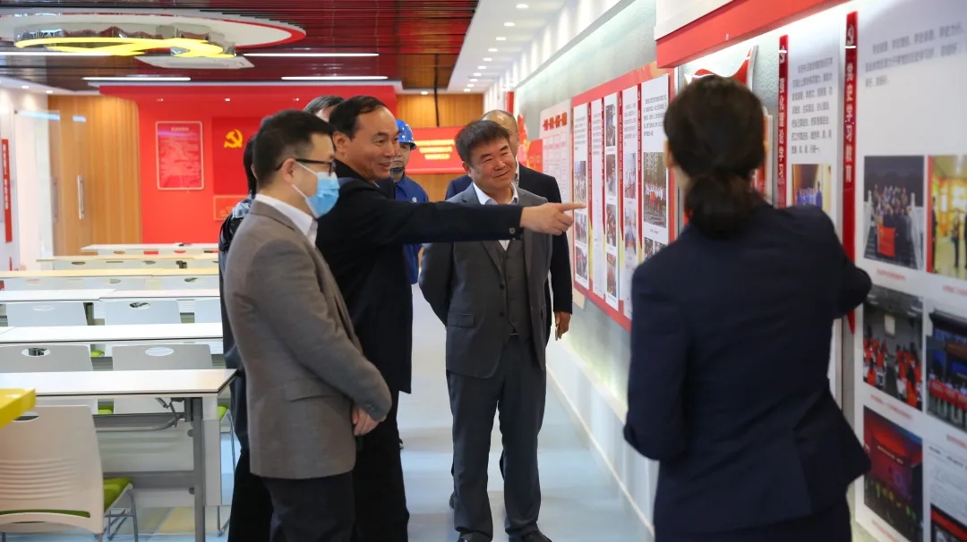 在鄭地投資公司黨支部省醫(yī)項(xiàng)目部,投資公司黨支部書記、董事長(zhǎng)楚紀(jì)方詳細(xì)匯報(bào)了黨支部以黨建智慧“大腦”為依托,圍繞“紅色物聯(lián) 融通萬(wàn)物”黨建特色品牌”,全力構(gòu)建“113N”黨建工作體系的特色做法。驗(yàn)收組一行詳細(xì)觀摩了省醫(yī)項(xiàng)目“紅色物聯(lián) 融通萬(wàn)物”黨建示范點(diǎn)創(chuàng)建觀摩展廳。張晟組長(zhǎng)高度肯定了投資公司省醫(yī)項(xiàng)目、綠城廣場(chǎng)地下綜合開(kāi)發(fā)等惠民項(xiàng)目在解決人民群眾“急難愁盼”問(wèn)題中展現(xiàn)的責(zé)任擔(dān)當(dāng),強(qiáng)調(diào)要繼續(xù)堅(jiān)持用黨的創(chuàng)新理論破解項(xiàng)目發(fā)展難題,以新方法新作為開(kāi)創(chuàng)工作新面貌,將黨建業(yè)務(wù)互促互融的政治優(yōu)勢(shì)轉(zhuǎn)化為項(xiàng)目建設(shè)優(yōu)勢(shì),把黨的政治優(yōu)勢(shì)轉(zhuǎn)化為項(xiàng)目中心工作發(fā)展的實(shí)際行動(dòng)。
