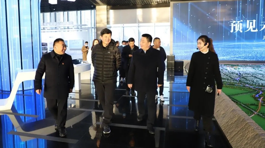 在地產(chǎn)集團金岱智慧產(chǎn)業(yè)園項目工地現(xiàn)場,調(diào)研聽取匯報后,曹東鋒對地產(chǎn)集團打造的首個產(chǎn)業(yè)園項目在科學規(guī)劃、產(chǎn)業(yè)定位、配套服務及前期預招商方面的工作成果給予充分肯定,對地產(chǎn)集團在國企改革、業(yè)務轉(zhuǎn)型和產(chǎn)業(yè)園區(qū)項目開拓方面的成效表示認可。在商務服務中心講解員的深入講解中,曹東鋒一行先后參觀了商務服務中心的各個功能區(qū),觀看了項目沙盤和宣傳片,聽取了鄭地發(fā)展公司董事長吉獻亮對項目情況的匯報,深入了解金岱科創(chuàng)城基本情況、投資規(guī)模、項目進度、園區(qū)布局、區(qū)位優(yōu)勢以及小李莊車站項目未來發(fā)展規(guī)劃。隨后,曹東鋒一行參觀了地產(chǎn)集團西流湖黨支部黨史學習教育成果展,并調(diào)研了鄭地發(fā)展公司平安建設工作。曹東鋒對公司黨支部創(chuàng)新開展的黨史學習教育系列活動、民生實事工程及公益志愿服務給予高度評價,對地產(chǎn)集團“黨建+平安建設”工作模式、妥善解決農(nóng)民工薪資發(fā)放及切實推進新形式下“零事故零上訪零案件”創(chuàng)建工作表示肯定。