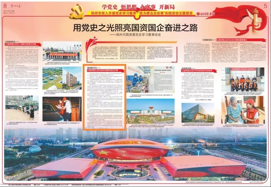 剛剛過(guò)去的2021年是我們黨建黨一百周年。在建黨百年的重要時(shí)刻,黨中央深謀遠(yuǎn)慮,鑒往知來(lái),在全黨深入開(kāi)展黨史學(xué)習(xí)教育活動(dòng),從百年黨史中汲取新時(shí)代趕考路的智慧和力量。1月25日,鄭州市深入開(kāi)展黨史學(xué)習(xí)教育“我為群眾辦實(shí)事”實(shí)踐活動(dòng)主題展覽之市國(guó)資委篇《用黨史之光照亮國(guó)資國(guó)企奮進(jìn)之路--鄭州市國(guó)資委黨史學(xué)習(xí)教育綜述》被《鄭州日?qǐng)?bào)》刊發(fā)、《人民日?qǐng)?bào)》客戶端轉(zhuǎn)載。